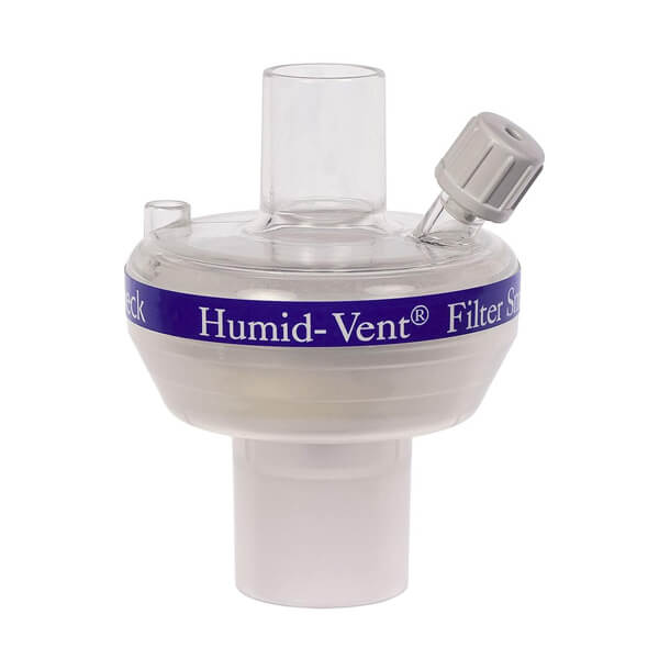 Filtro de nariz artificial HME, Humid-Vent pequeño y recto para volúmenes Tidal entre 150 ml-1,000 ml. Ofrece una baja resistencia al flujo.